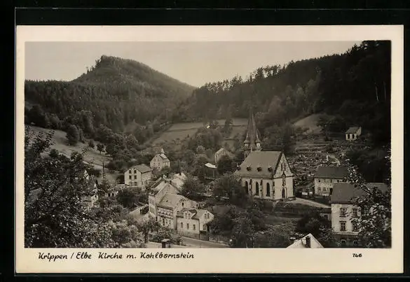 AK Krippen /Elbe, Kirche mit Kohlbornstein