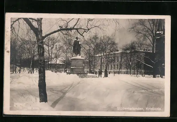 AK Kristiania, Studenterlunden, Blick auf ein Denkmal