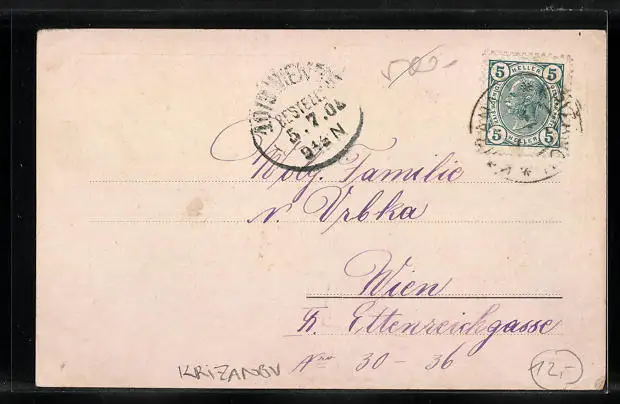 gelaufen 1905, Ecken bestoßen, sonst guter Zustand