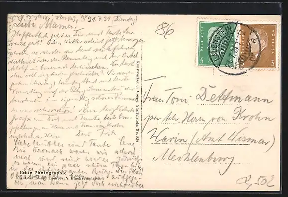 alte Ansichtskarte, gelaufen 1931, guter Zustand