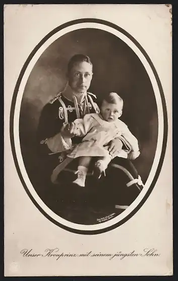 AK Kronprinz Wilhelm in Uniform mit seinem jüngsten Sohn auf dem Schoss