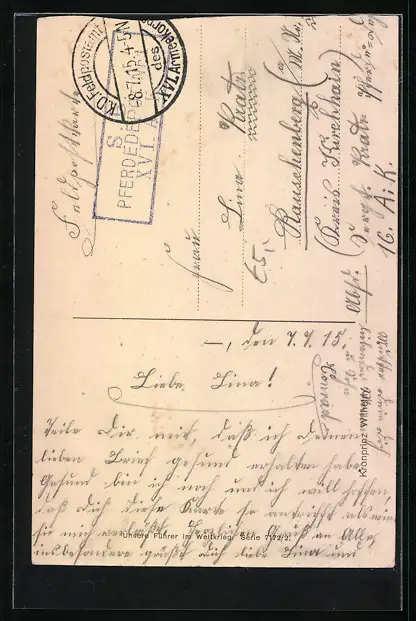 alte Ansichtskarte, gelaufen 1915, Rand oben beschnitten, Stempelspur, guter Zustand