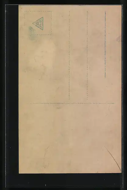 Personenbezogene Daten auf der Rückseite der Karte wurden durch blauen Textmarker unkenntlich gemacht. Die blauen Stellen sind auf die Vorderseite durchgeweicht und wirken sich negativ auf das Postkartenfoto aus