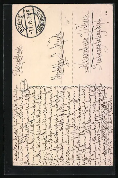 gelaufen 1915, Eckknick oben li., Stempelspur, guter Zustand