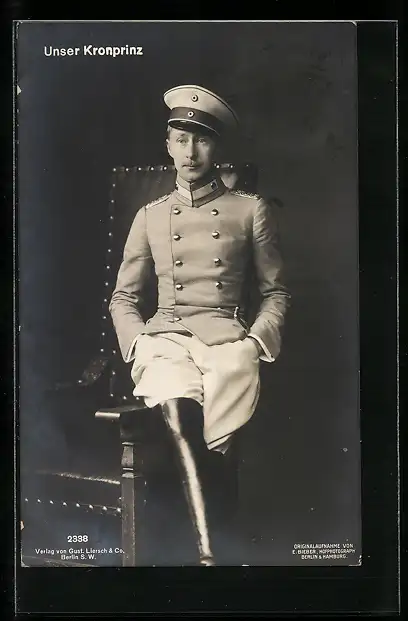 AK Kronprinz Wilhelm von Preussen in Uniform auf einem Ledersessel