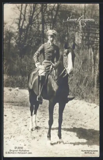 AK Kronprinz Wilhelm von Preussen in Uniform, auf einem Pferd sitzend