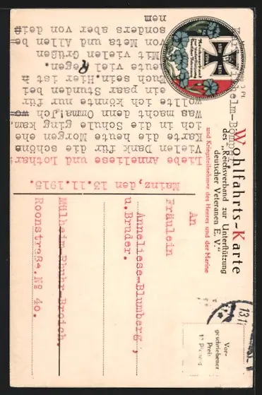 alte Ansichtskarte, gelaufen 1915, Briefmarke entfernt, Eckknick unten links, guter Zustand