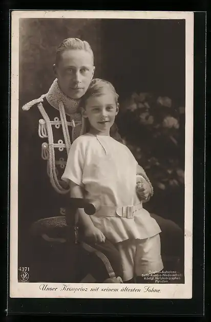 AK Kronprinz Wilhelm von Preussen lächelnd mit seinem ältesten Sohn