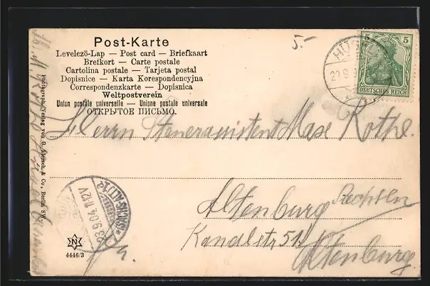 alte Ansichtskarte, gelaufen 1904, Abriebspuren unten re. und mittig, guter Zustand