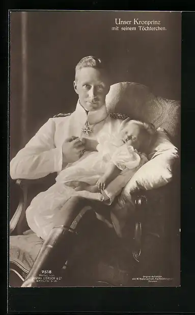 AK Kronprinz Wilhelm von Preussen mit Orden und seiner Tochter auf dem Schoss in jungen Jahren