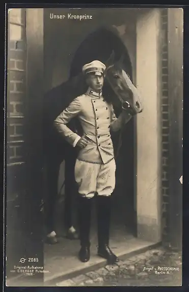 AK Kronprinz Wilhelm von Preussen mit Pferd in den Stallungen