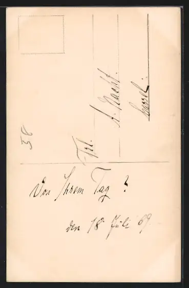 Personenbezogene Daten auf der Rückseite der Karte wurden durch blauen Textmarker unkenntlich gemacht. Die blauen Stellen sind auf die Vorderseite durchgeweicht und wirken sich negativ auf das Postkartenfoto aus
