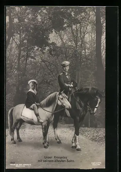 AK Kronprinz Wilhelm von Preussen mit seinem ältesten Sohn zu Pferd