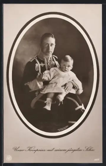 AK Kronprinz Wilhelm von Preussen mit seinem jüngsten Sohn in Uniform