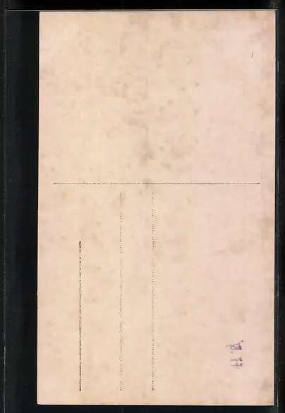 Personenbezogene Daten auf der Rückseite der Karte wurden durch blauen Textmarker unkenntlich gemacht. Die blauen Stellen sind auf die Vorderseite durchgeweicht und wirken sich negativ auf das Postkartenfoto aus