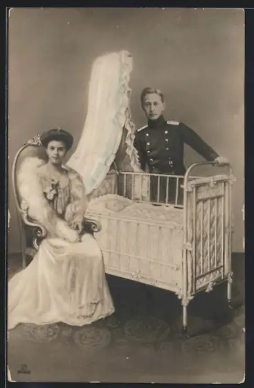 AK Kronprinz Wilhelm von Preussen und Gattin am Bettchen ihres Kindes