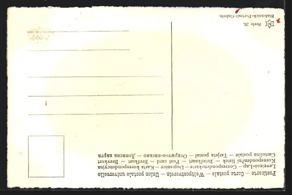 Personenbezogene Daten auf der Rückseite der Karte wurden durch blauen Textmarker unkenntlich gemacht. Die blauen Stellen sind auf die Vorderseite durchgeweicht und wirken sich negativ auf das Postkartenfoto aus