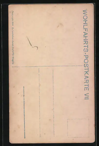 Personenbezogene Daten auf der Rückseite der Karte wurden durch blauen Textmarker unkenntlich gemacht. Die blauen Stellen sind auf die Vorderseite durchgeweicht und wirken sich negativ auf das Postkartenfoto aus