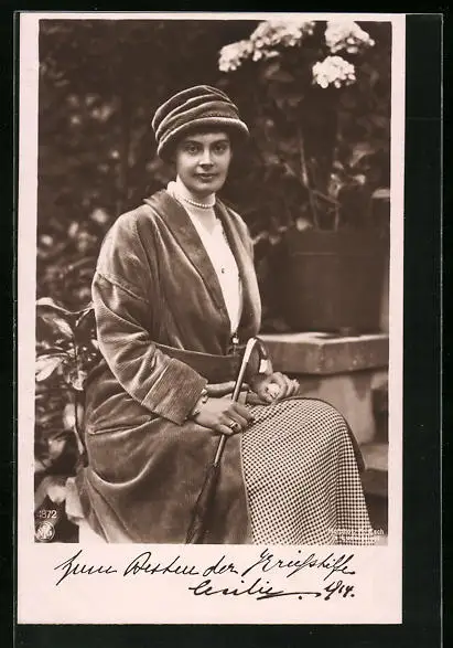 AK Kronprinzessin Cecilie mit Mantel und Hut