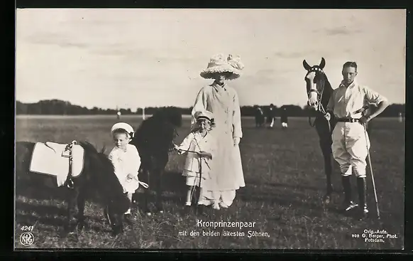 AK Kronprinzessin Cecilie mit ihren beiden ältesten Söhnen bei einem Ausritt