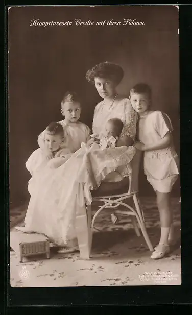 AK Kronprinzessin Cecilie mit ihren vier Söhnen abgelichtet