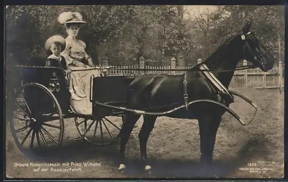 AK Kronprinzessin Cecilie und Prinz Wilhelm auf Spazierfahrt im Einspänner