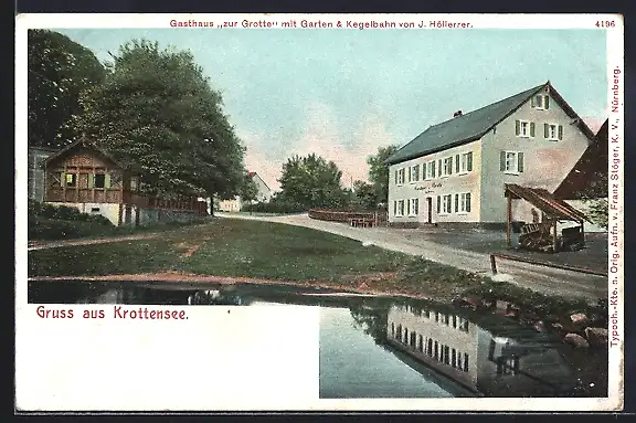 AK Krottensee, Gasthaus zur Grotte mit Garten u. Kegelbahn
