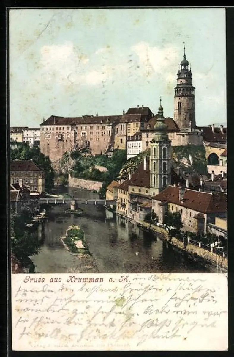 AK Krumau / Cesky Krumlov, Teilansicht an der Moldau