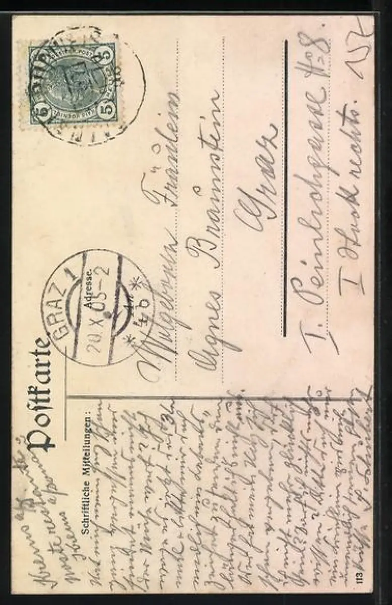 alte Ansichtskarte, gelaufen 1905, Eckknick oben li., Stempelspur, guter Zustand