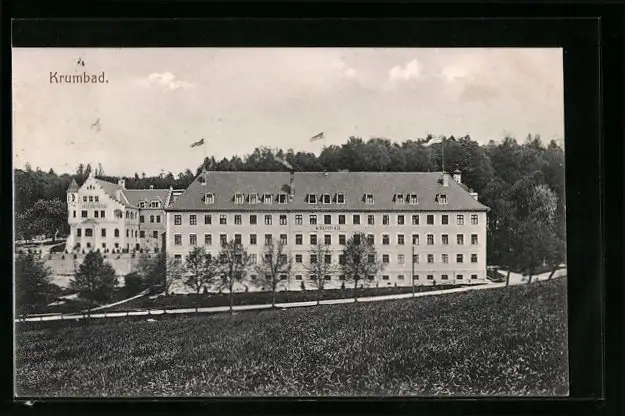 AK Krumbad, Ortspartie mit Hotel und Restaurant