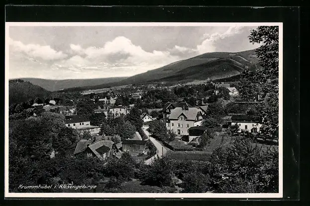 AK Krummhübel /Riesengeb., Ortsansicht gegen Berge