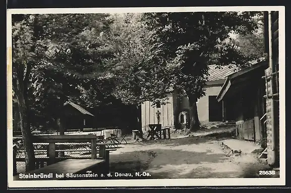 AK Krummnussbaum, Steinbründl, Gasthaus mit Garten