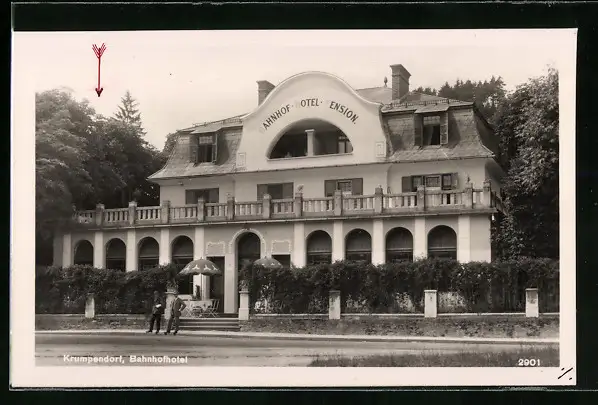 AK Krumpendorf, Bahnhofhotel mit Terrasse