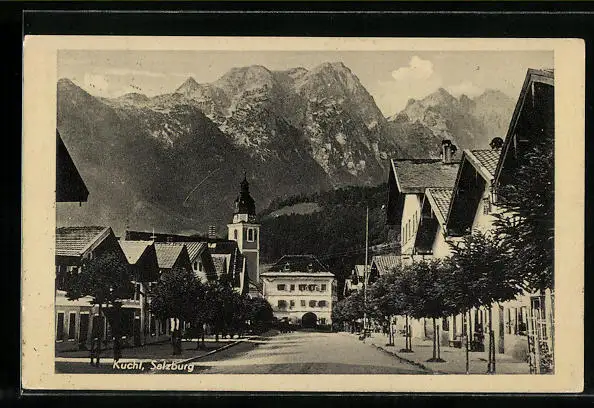 AK Kuchl, Strassenpartie mit Kirche