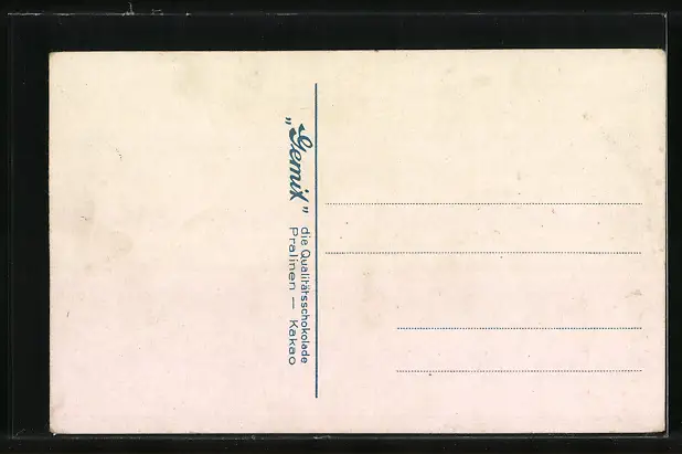 Personenbezogene Daten auf der Rückseite der Karte wurden durch blauen Textmarker unkenntlich gemacht. Die blauen Stellen sind auf die Vorderseite durchgeweicht und wirken sich negativ auf das Postkartenfoto aus