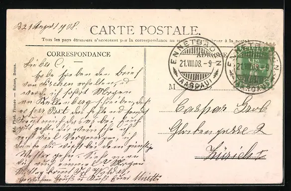 alte Ansichtskarte, gelaufen 1908, guter Zustand