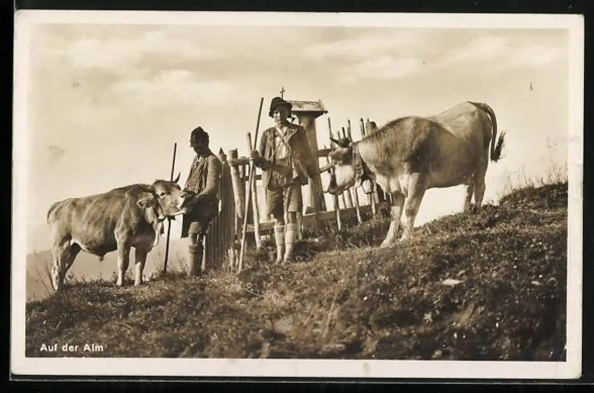 AK Kühe mit Hirten auf der Alm