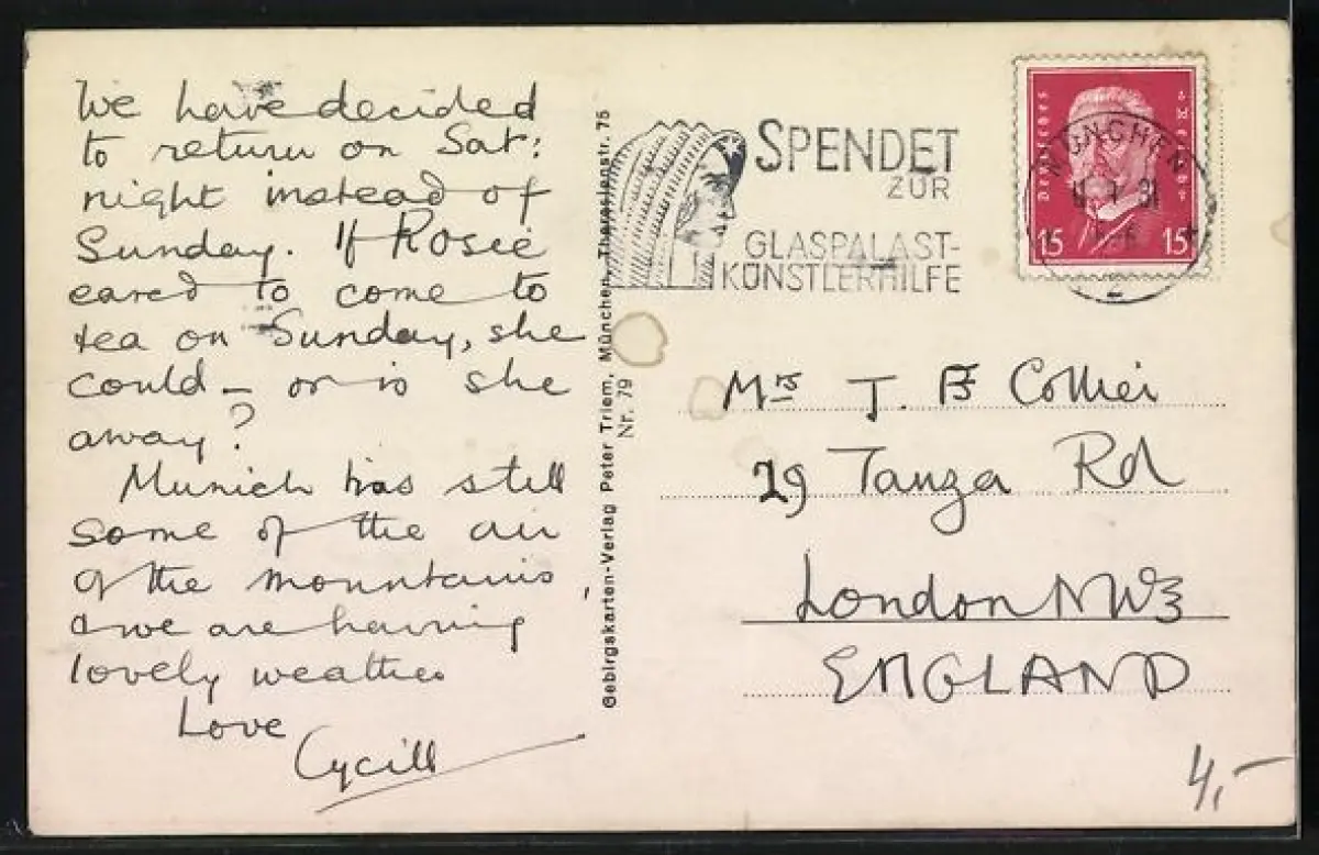 gelaufen 1931, Eckknick oben li. u. unten re., guter Zustand
