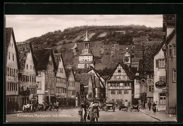 AK Künzelsau, Marktplatz mit Rathaus
