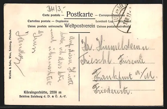 gelaufen 1911, Briefmarke entfernt, rückseitig Oberflächenschaden, guter Zustand