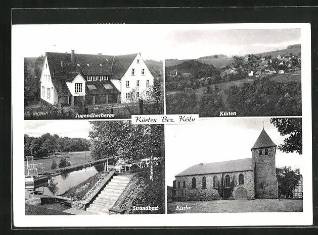 AK Kürten / Köln, Jugendherberge, Kirche, Strandbad