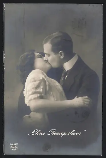 Personenbezogene Daten auf der Rückseite der Karte wurden durch blauen Textmarker unkenntlich gemacht. Die blauen Stellen sind auf die Vorderseite durchgeweicht und wirken sich negativ auf das Postkartenfoto aus