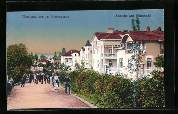 AK Küstendil, Strassenpartie mit Gebäudeansicht
