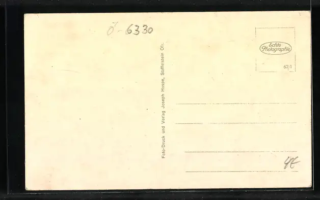 Personenbezogene Daten auf der Rückseite der Karte wurden durch blauen Textmarker unkenntlich gemacht. Die blauen Stellen sind auf die Vorderseite durchgeweicht und wirken sich negativ auf das Postkartenfoto aus