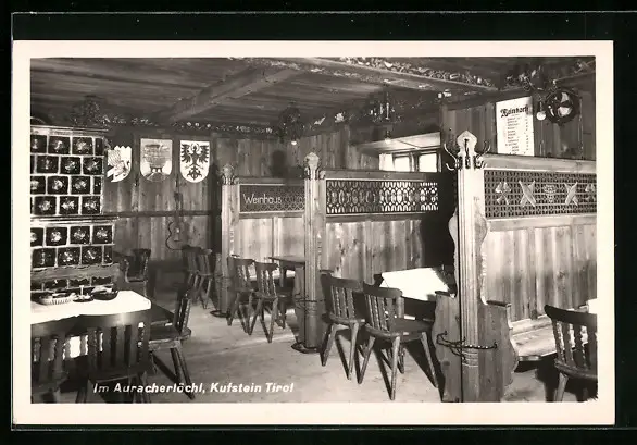 AK Kufstein, Gasthaus Auracherlöchl, Innenansicht