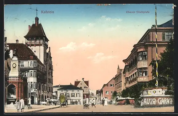 AK Kufstein, Oberer Stadtplatz mit Denkmal