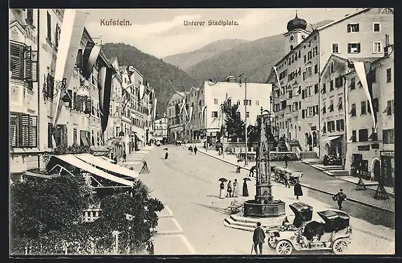 AK Kufstein, Strassenpartie am unteren Stadtplatz