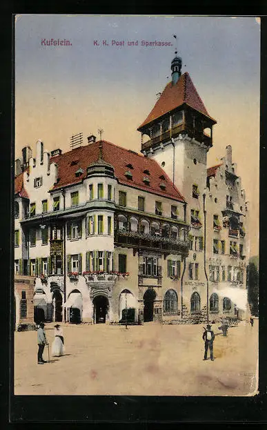 AK Kufstein, Strassenpartie an der K. K. Post und Sparkasse