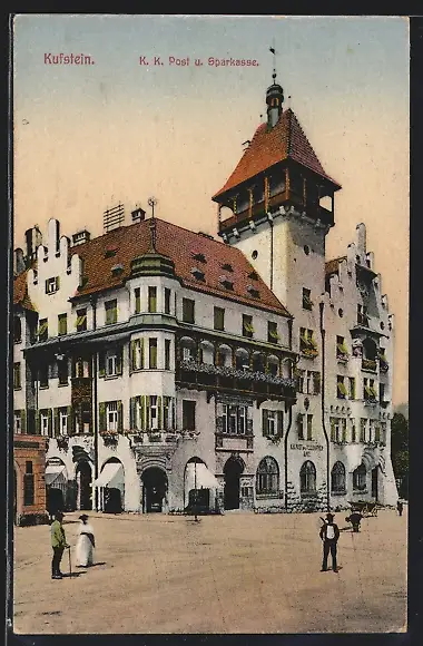 AK Kufstein, Strassenpartie an der K. K. Post und Sparkasse