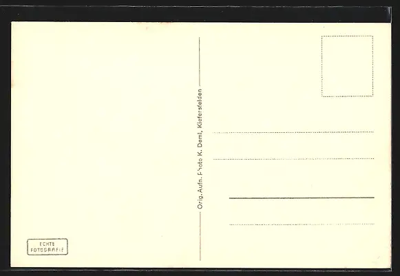 Personenbezogene Daten auf der Rückseite der Karte wurden durch blauen Textmarker unkenntlich gemacht. Die blauen Stellen sind auf die Vorderseite durchgeweicht und wirken sich negativ auf das Postkartenfoto aus